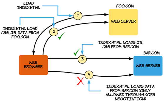 브라우저는 스크립트에서 URL 데이터 접근시, Same Origin일 경우에만 허가한다.